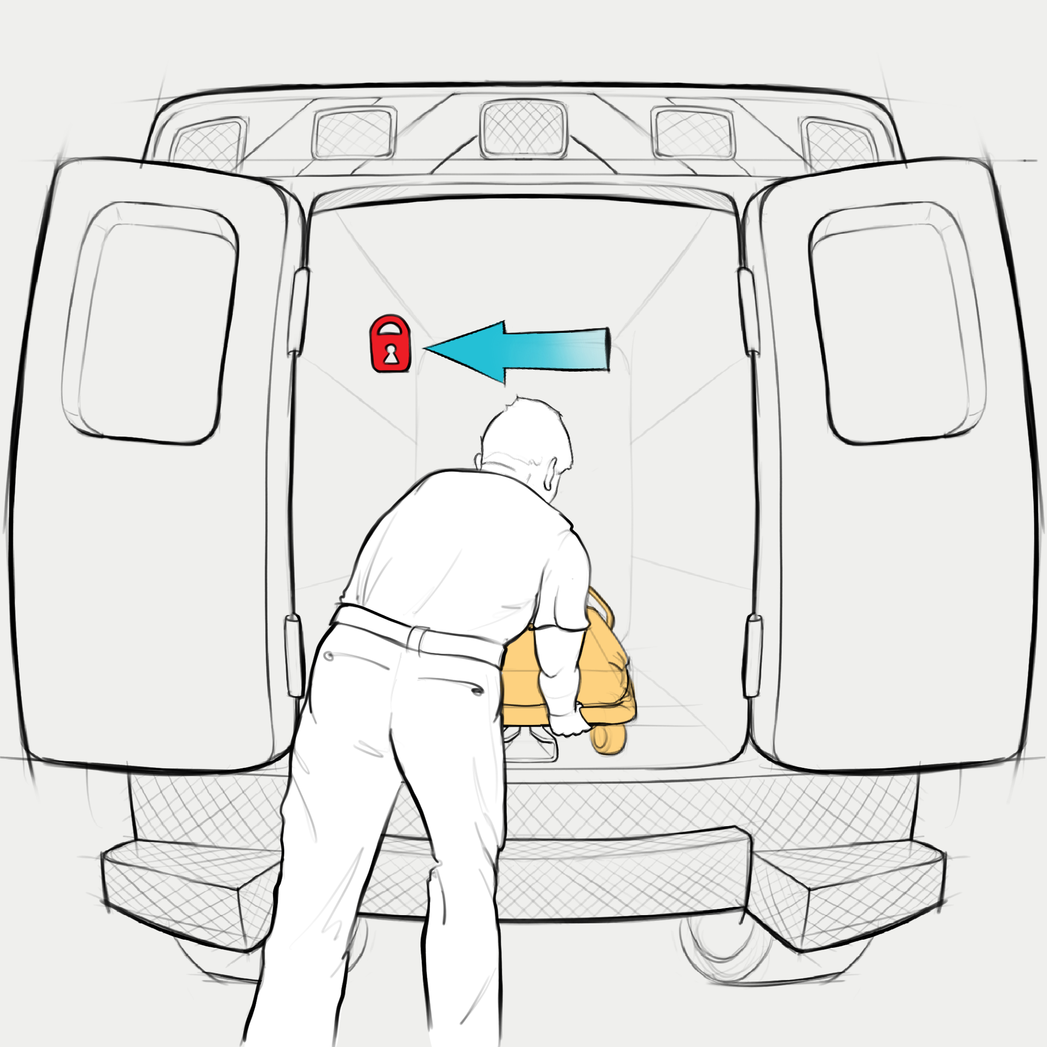 Finally, once the stretcher is all the way in the ambulance, the main operator must jerk the load to one side in order to engage the transport lock. This is uncomfortable for both the patient and EMT.