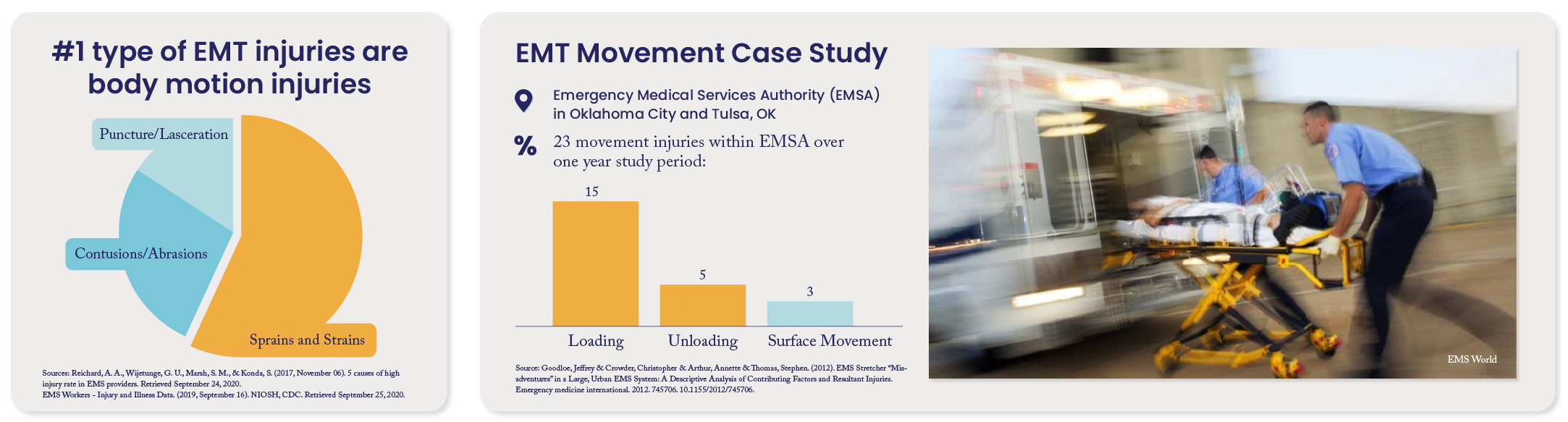 “EMS personnel experience injuries at a higher rate than workers in many other occupations…Beyond the effects faced by the injured worker themselves, the workforce can suffer from decreased productivity, inadequate staffing levels and other increased costs.”
